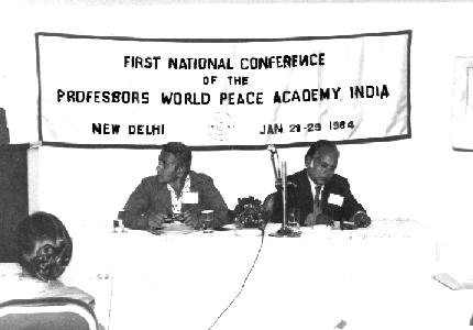 PWPA meeting, January 28-29 1984, New Delhi, India. Professor Motilal Jotwani, PWPA-India President is seated second from right.